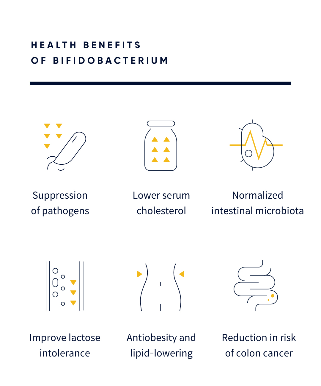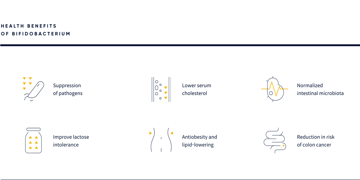비피도박테리움은 건강한 성인의 장 내에 가장 많이 존재하는 속들(genera) 중의 하나이지만, 특히 모유 수유하는 동안 훨씬 더 두드러집니다. 더욱이, 이들은 인체에 의해 소화하지 못하는 식이 성분의 신진대사에 있어서 중요한 역할을 하며, 면역 체계의 성숙에 있어서도 중요한 역할을 담당하는 것으로 알려져 있습니다.