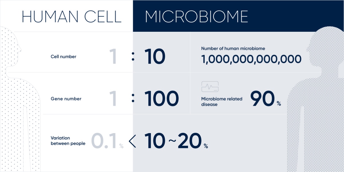2001년 Joshua Lederberg에 의해 만들어진 마이크로바이옴이라는 단어는 우리 몸의 공간을 공유하고 있는 모든 유기체의 생태 공동체를 뜻하는 의미로 썼습니다. 인체 마이크로바이옴은 인체 내부 및 표면에 있는 모든 미생물과 그들의 완전한 유전체(genome)를 의미합니다.